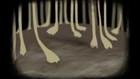 Antropomorfna figura s glavom slona stoji pred ogledalom u kupaonici. Kako tonemo u sve dublje slojeve organizma koji istovremeno nalikuje živčanom sustavu i biljci, lik čovjeka-slona reagira na nasilan i nepredvidljiv način, stvarajući neku vrstu koreografije koja završava nestajanjem samog lika.