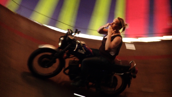 Bivša zvijezda legendarne obitelji cirkusanata, Brankica provodi život prkoseći gravitaciji. Zaglavljena u svijetu balkanskih sajmišta, na svom motociklu neumorno ponavlja iste, po život opasne trikove, vozeći svodom ogromne bačve, poznate kao „zid smrti“.
