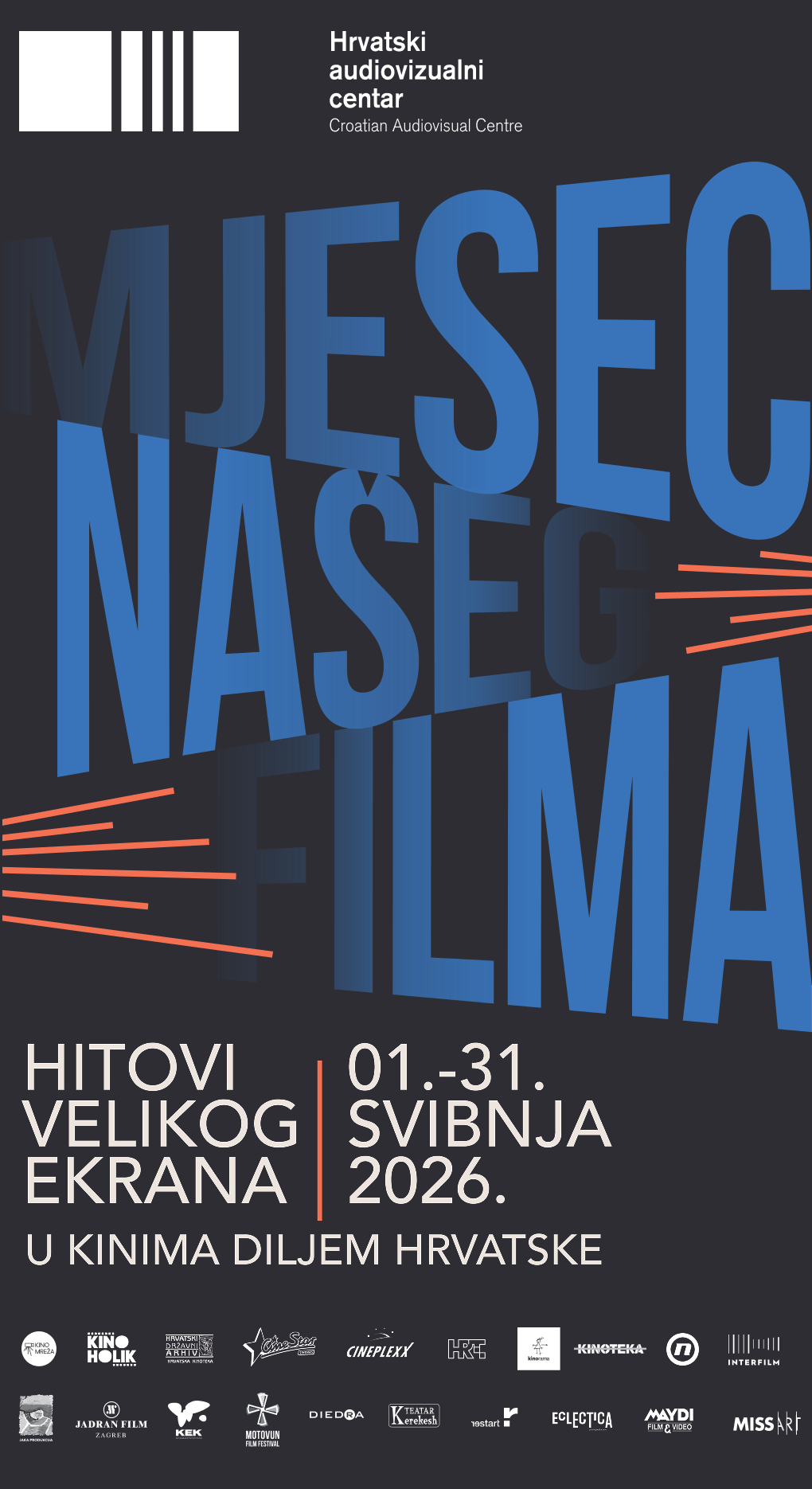 Približava nam se četvrto izdanje manifestacije Mjesec našeg filma! Tijekom cijelog svibnja, u više od 70 kina u pedesetak gradova diljem Hrvatske, prikazuje se čak 25 dugometražnih hrvatskih filmova. Povodom ovogodišnjeg izvanrednog rezultata gledanosti hrvatskog filma u domaćim kinima, novo izdanje manifestacije Mjesec našeg filma posvećeno je naslovima koji su posljednja tri desetljeća punilli kinodvorane i oduševljavali publiku.